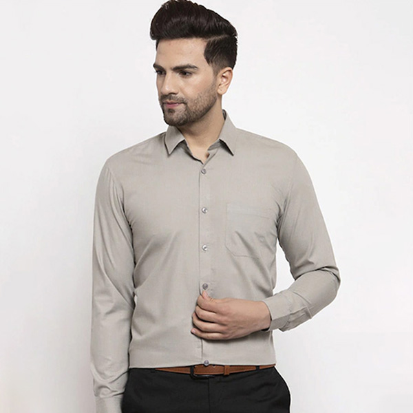 Men Grey Smart Regular Fit Solid Formal Shirt