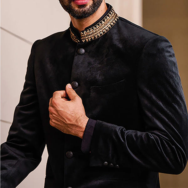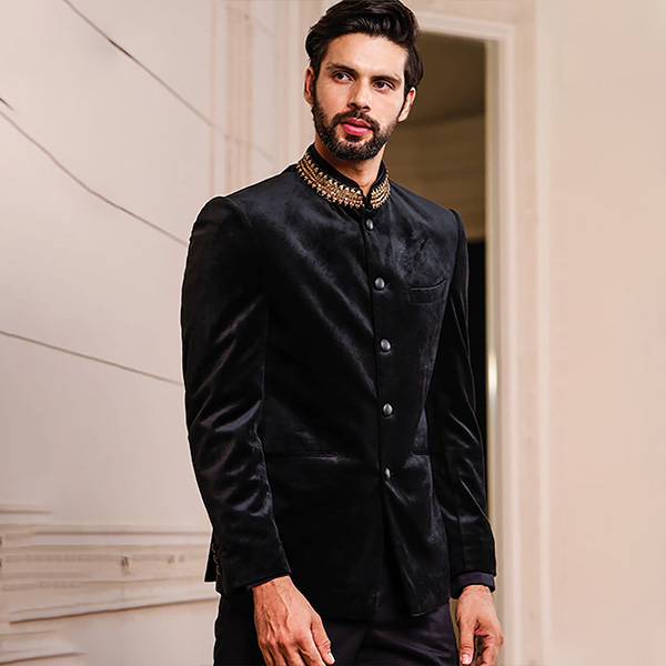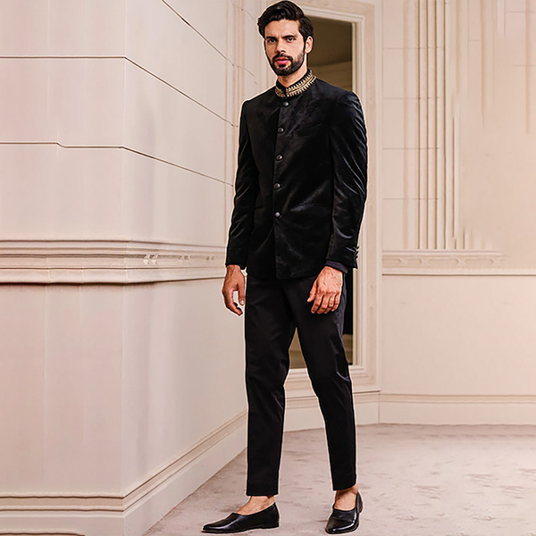 • Define your presence in this immaculate navy textured three-piece suit, cut in a sharp Slim Fit