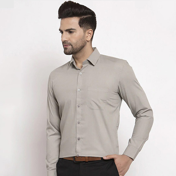 Men Grey Smart Regular Fit Solid Formal Shirt