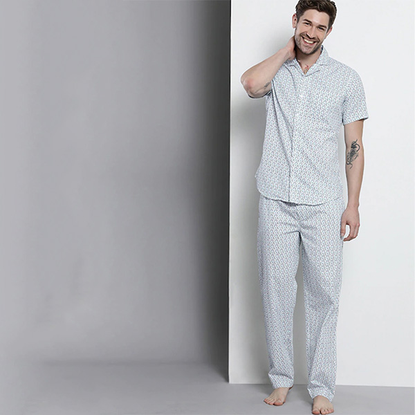 Men White Printed Pure Cotton Night suit