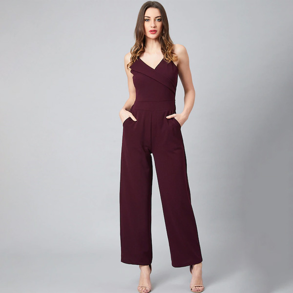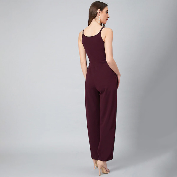 Women Burgundy Solid Basic Jumpsuit